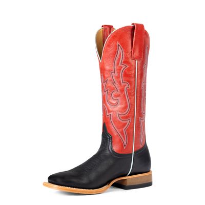 Beautiful Full Grain Leather Boot Black Foot Red Top